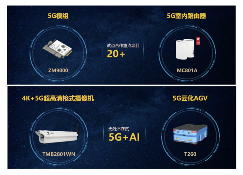 比如中兴通讯推出了5G工业模组ZM9000可广泛应用于无人驾驶、远程操控、机器人巡检、媒体直播、工业网关、石油勘探等智能制造领域,并与中国电信基于ZM9000联合打造了业内首款5G智能安全摄像机,以及推出了可用于智慧工厂、制造车间、物流仓库等场景的5G云化AGV等,以加速推动产业数字化、治理智能化。