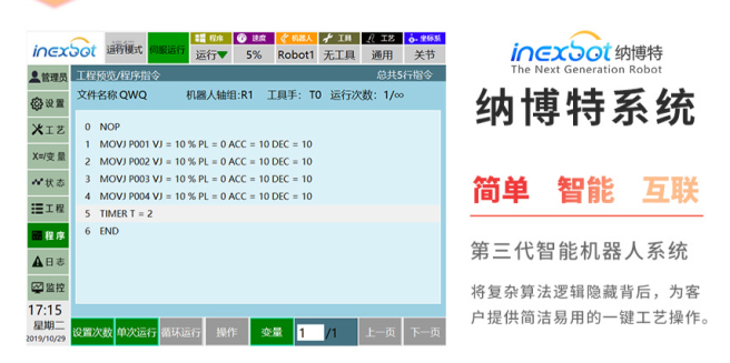 而纳博特在工艺研发方面投入巨大,简化工艺复杂度,降低应用难度, 充分利用”引导式”操作界面, 将”简单,智能”发挥到极致,和众多本体商和集成商一起开发新的细分领域应用。
