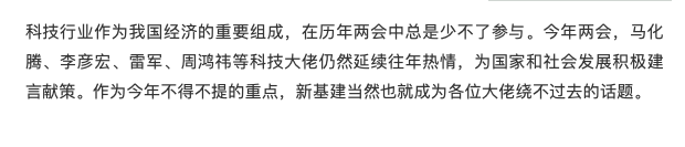 马化腾认为,要加快制定产业互联网国家战略,壮大数字经济。他建议,加强顶层设计,制定系统推进产业互联网发展的国家战略,加快推进云计算等新基建,以“数据中台”建设为重点和突破口,进一步推动数据开放共享等。