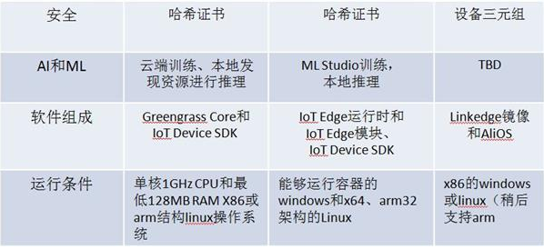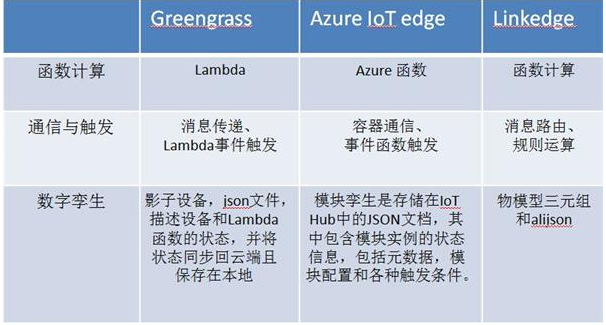 其中AWS推出了Greengrass,微软推出了Azure IoT edge,而阿里云则推出了linkedge等边缘计算工具。这些工具均实现了定义中所介绍的,将云端能力迁移到设备中,既可以在本地处理数据,又可以利用云端的优势。对这三家边缘计算平台的各方面作一比较: