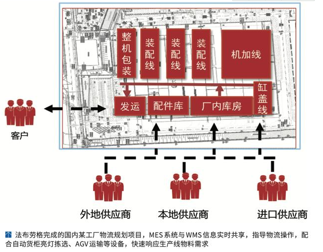 概括来讲,造成当前中国制造企业生产物流存在问题的主要因素有两个:一方面,中国企业在工厂建设之初没有做好生产物流设计,没有形成合理、规范顺畅的作业流程,导致生产流程存在很多断头式问题。另一方面,制造企业的智能制造要求与之相配套的物流体系,这要倒推到供应链的前端,进行产业链条上一系列相关环节的改善。如,物料配送上线自动化,就需要做到物流器具标准化,进而需要零件标准化,在给供应商下采购订单时就要求其提供标准化的零件。以上的要求牵扯到采购订单、工厂布局、库房设计以及库内功能设计等等,环环相扣。