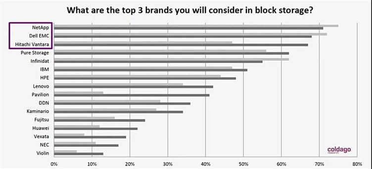 根据数据存储研究机构Coldago Research的2020终端用户调研,Hitachi Vantara被用户评为块存储领域的领导者。