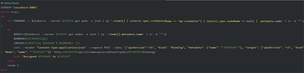 调度器的编写请参考 kubernetes 默认调度器的实现,最核心的内容就是读取 apiserver 中 pod 的值,根据特定的算法找到合适的 node,然后把调度结果会写到 apiserver。