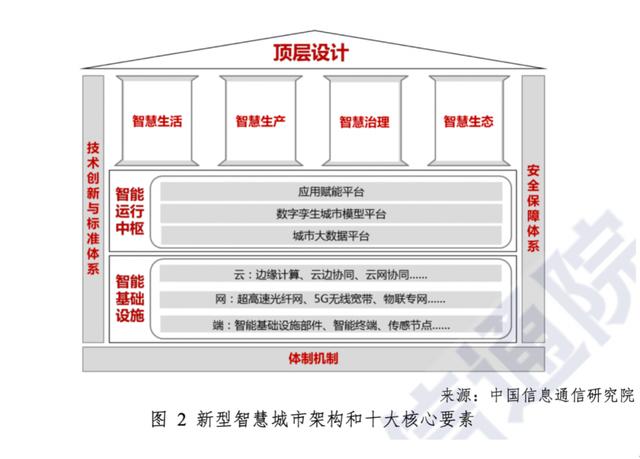 信通院发布的《新型智慧城市发展研究报告 2019》显示,智慧城市架构,最底层是智能基础设施,这一层主要是华为、浪潮、紫光这一批ICT领域的厂商在搭建,智能运行中枢,主要是阿里、腾讯、百度、京东等一批互联网企业在搭建。