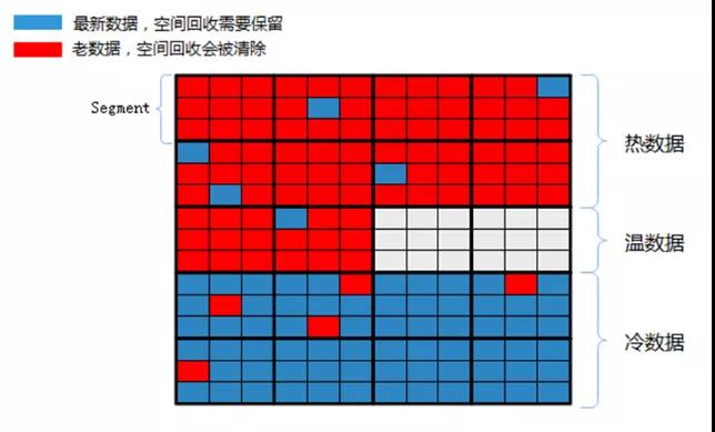在进行数据分区管理后,空间回收是以 segment 为执行单位,可以通过灵活的空间回收的策略选择代价较小(需要搬动数据较少)的 segment 进行空间回收,这种空间回收过程对上层业务的性能影响较小,而且配合 SSD 中 discard 指令,还能够降低对 SSD 的寿命的影响。