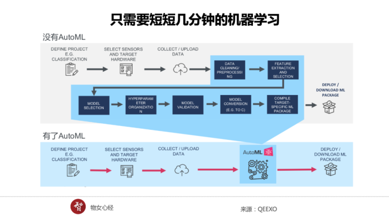 为了更好的理解AutoML,清华校友翟伟所在公司Qeexo通过一个有趣的对比进行了解释。