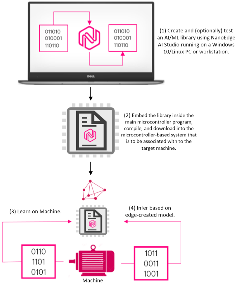 今年2月,Cartesiam发布了一个名为NanoEdge AI Studio的软件系统,该系统能够安全地生成AI算法,并且生成的算法只需两分钟就可在ARM微处理器上运行,容量大小仅为4~16KB RAM。