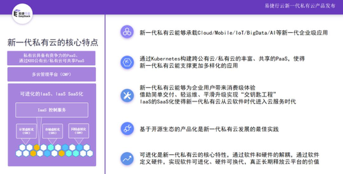 第三,在IaaS的实施上,通过云平台的微服务化和一体化设计,新一代私有云能够为企业用户带来公有云似的消费级体验,不仅从交付、运维、升级都可以实现“交钥匙工程”,也使得新一代私有云按需付费的云服务模式得以实现,从云软件时代进入云服务时代。