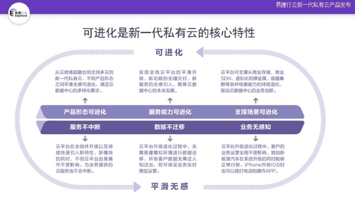 从市场规模化角度:目前传统私有云最大的痛点就是版本的碎片化,随着客户的数量不断增长,不同版本越多,运维负担越重,客户满意度越差,任何一家企业即便是行业巨头也无法应对。在新一代私有云核心的设计中强调可进化,就是要解决版本碎片化问题,这也为新一代私有云的快速规模化发展提供基础。
