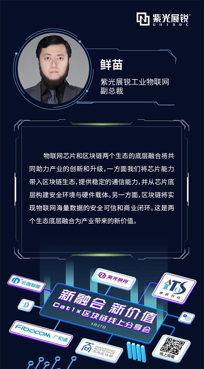 发布会上,广和通基于紫光展锐的物联网芯片平台春藤8910DM以及摩联科技的BoAT区块链应用框架,推出了全球首款Cat.1区块链模组L610,将在智慧农业、车联网等行业中创新商业新模式。