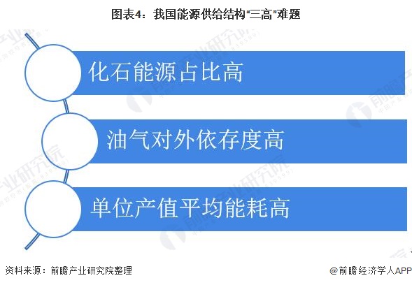 目前,我国保障能源供给面临突出的结构性矛盾,“三高”难题还未解决。国家能源局数据预测,2020年我国化石能源将占一次能源消费总量的85%左右,化石能源占比高的问题还未解决;2019年我国原油对外依存度升至70.8%,天然气对外依存度达到43%,油气对外依存度居高不下;此外,中国单位GDP能耗是世界平均水平2.2倍,平均能耗高。