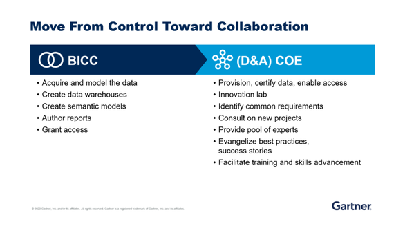 一个好的数据分析团队是由集中的团队和各条业务线上的分散团队组成的。很多企业过分的关注于技术架构的建设而不是业务人员基于数据的合作,在一味追求新的数据分析技术栈的过程,忽略了对于组织战略的调整以解决实际业务用户的问题,把原来遗留的问题从数据仓库移到了数据湖,再移到现在的津津乐道数据中台,而不是解决它们,一个现代化的数据分析团队应该是数据分析能力的赋能者,从管控数据能力到促进基于数据的合作。
