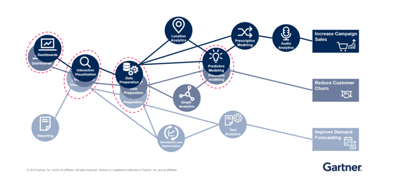 例如,由机器学习为基础的增强型数据分析和管理工具,就可以大大降低用户的使用门槛(自然语言驱动的分析)并减少数据管理的工作量(主动利用元数据学习获得用户行为)。企业应该了解到利用增强型能力是为减少数据分析手动的部分,从而给用户给多时间去构思业务如何使用数据。