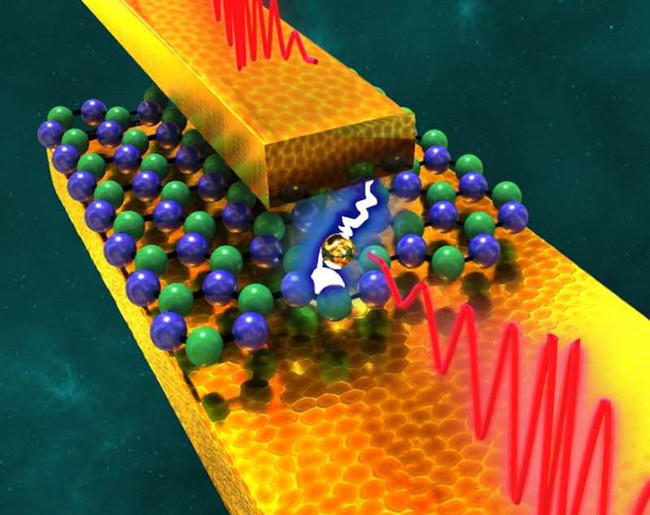 它使用与石墨烯属于同一族的纳米材料六角形亚硝酸硼硼(hBN),并以蜂窝状包含单层硼和氮原子,蜂窝状图案夹在一对金电极之间。