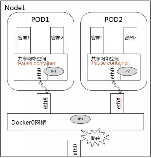 Kubernetes在17年就已占据77%市场份额[3],而后也逐年上升。因此,主要来看看kubernetes。Kubernetes(k8s)是自动化容器操作的开源平台,这些操作包括部署,调度和节点集群间扩展。其架构组件较多,不一一赘述,读者可自行查阅。这里着重提一下Pod。Pod是kubernetes中可以被创建、销毁、调度的最小单元,其中包含pause容器,以及一个或一组应用容器。如下图所示,一台主机节点可以创建多个Pod,每个Pod中能容纳多个容器,但都会在最初创建pause容器,其他容器与pause容器共享net、ipc、pid等资源。网络模型也是基于docker的网络模型创建和使用的。