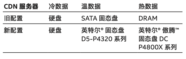 一是,在架构现代化改造方面,VK将其CDN服务器中存储温数据的SATA固态盘升级为英特尔固态盘 D5-P4320 系列,将热数据从DRAM迁移到了英特尔傲腾固态盘 DC P4800X系列。同时,在全新的存储方案中,温数据则存储在基于NVMe的英特尔固态盘 D5-P4320系列上。此外,VK还通过引入英特尔傲腾持久内存取代DRAM来处理相关工作负载,由此降低单位比特成本。