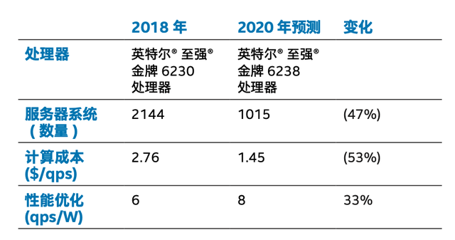 与使用英特尔至强金牌6230处理器相比,VK 预计使用英特尔至强金牌6238处理器可节省的成本情况