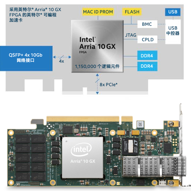 采用英特尔Arria 10 GX FPGA 的英特尔PAC 概念和内部视图