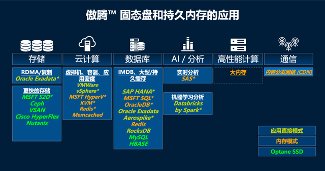 其二,数据库之于企业的重要性不言而喻,但过去由于数据库受到存储和内存受限,往往难以承载越来越多新的数据。因此,突破内存与存储限制,是帮助系统 性能提升的关键。那么,英特尔傲腾固态盘,则可以更好的对接英特尔傲腾持久内存,其高吞吐量、低延迟、高服务质量 (QoS )和高耐用性等特性,也会高效助力应用程序提升运行速度、降低延迟敏感型工作负载的事务处理成本,并改善数据中心的整体TCO。