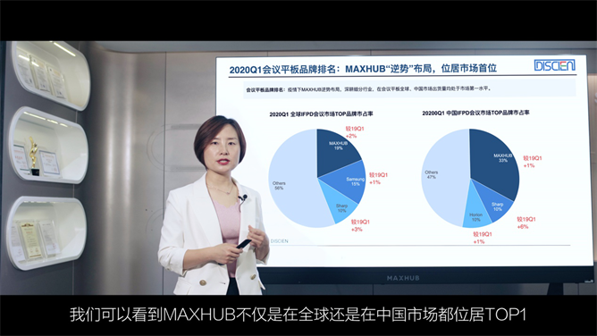 无疑,作为行业的先行者,MAXHUB推动并且引领着会议平板行业的发展,受到市场的高度肯定。近日迪显咨询(DISCIEN)官方公众号发布的《二季度新品盘点,看会议平板/协作市场发展之路(二)》文章中数据显示,2020年Q1,在全球和中国会议平板市场分品牌出货量市占率中,MAXHUB分别以19%和33%的市占率领先其他品牌,国际国内出货量市占率均位居市场首位。