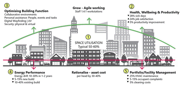 建筑性能通常被认为是节约能源的努力。尽管这对于解决气候紧急情况至关重要,但我们不应忽视改善其他衡量建筑性能的方法的机会。可以而且应该使用技术为建筑物或城市增值。通过主动使用技术和数据,可以大大改善项目的业务案例。
