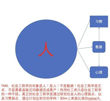 而也有人这样定义:社会工程学是通过对社会人的心里弱点、习惯弱点的分析,通过手段达到目的的过程。