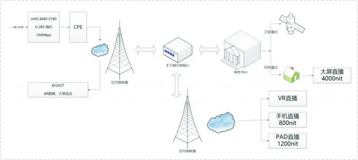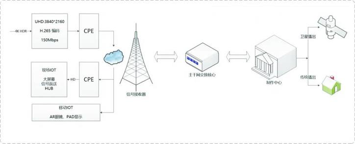 ·5G CPE通过信号接收器和主干网交换器,链接到制作中心;