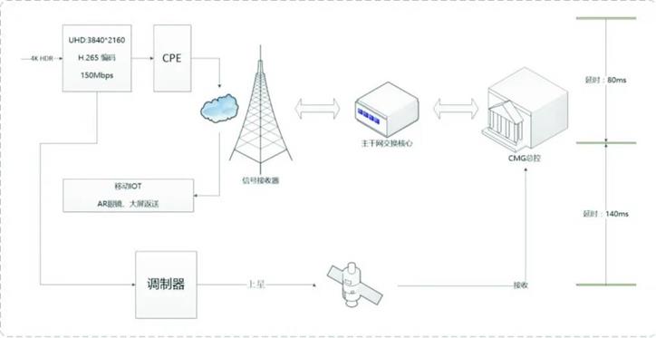 ·备路:5G-CPE通过主干网,链接到CMG总控,延时约80ms;