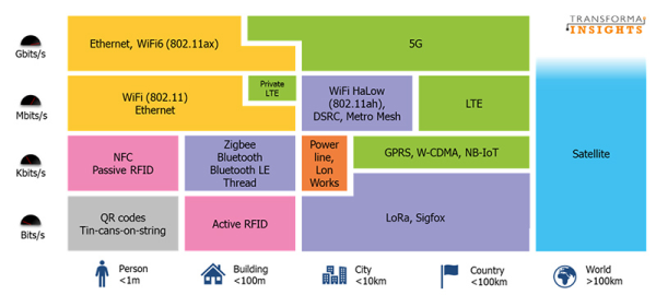 在室内和个人通信领域,IEEE 802.15.4、Wi-Fi和蓝牙等技术,已经按照可靠性、通信距离和带宽等能力,圈定了自己的优势范围。如果走出室内,在物联网的广域通信领域,充斥着各种标准,大多数并不完美,远未达到普及。