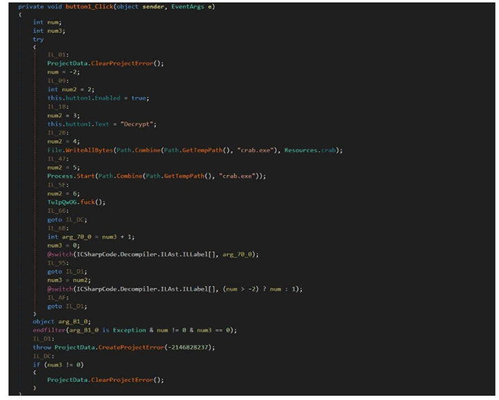 当一个绝望的用户在伪造的解密器中输入他们的信息并点击“开始扫描”,程序将提取另一个名为crb .exe的可执行文件并保存到%Temp%文件夹中。