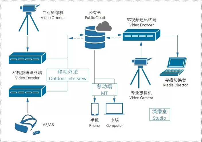 5G具备的高带宽、低时延等特性,一方面可以打破4G对传输速率的限制,带动整个视频产业数据采集、制作、播放内容的升级;另一方面,也能进一步推动 AR/VR 这类对画质和时延要求较高的新型应用的发展。因此,5G+超高清视频已经成为优先落地的首批5G“杀手级应用”——5G+超高清融合通讯系统正是其中的典型。
