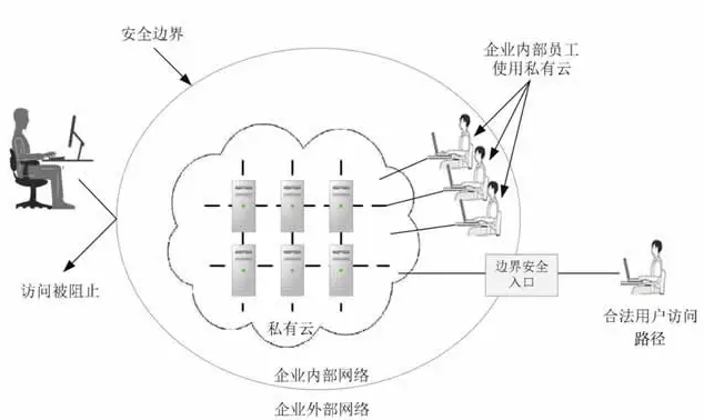 私有云的核心特征是云端资源只供一个企事业单位内的员工使用,其他的人和机构都无权租赁并使用云端计算资源。至于云端部署何处、所有权归谁、由谁负责日常管理,并没有严格的规定。