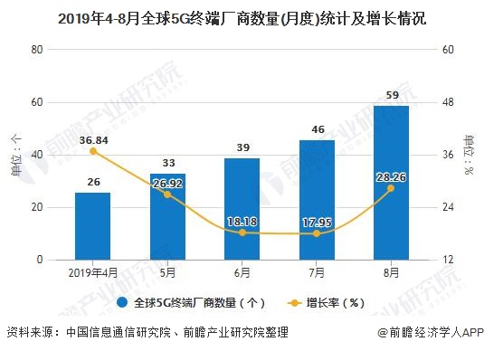 目前全球5G建设进程进展迅速,在2019年4-8月短短5个月时间内,全球5G终端厂商数量便已从26家增长至59家,共计增长33家,增长速度较快。由于5G网络的峰值速率、流量密度、连接密度等显着优于4G,使得“万物互联”计划得以进一步推行。而未来5G技术在多个产业的应用势必将使数据量爆炸性增长,数据中心的市场需求受此影响亦将迅速提高。5G技术推动下,数据中心产业有望迎来新一轮发展小高峰。