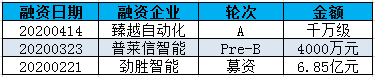 据高工产研机器人研究所(GGII)不完全统计,截至2020年5月,2020年中国机器人系统集成企业投融资案例共3家,分别是臻越自动化、普莱信智能和劲胜智能,行业领域分别在汽车行业、半导体行业和3C电子行业。