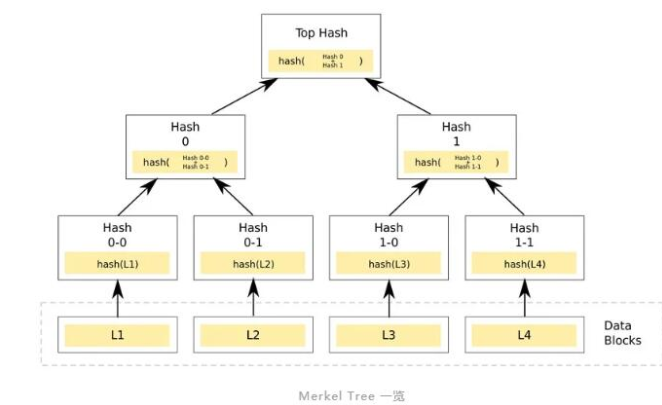 从数据结构上来说,一个合格的区块应该像一颗二叉树,或者类似于生物谱系图,从爷爷辈到父辈到自己这辈整体看下来就是个分叉树,不过区块是个二叉的。这样的结构是因为区块本身是基于Merkel Tree这种数据结构来进行组织的,最下层是交易的【哈希】,往上是两个交易哈希的哈希,再往上是两个「两个交易哈希」的哈希的哈希。通俗点理解就是你的公司,最下面是干活的你;上面是看你干活的主管;再上面是主管的主管,看下级主管和干活的你,以此类推到CEO。