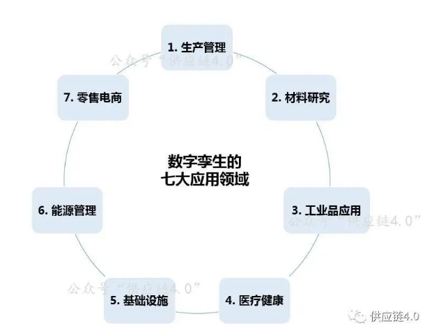 数字孪生应用的领域很广,图4中提到的七个方面是较为典型的: