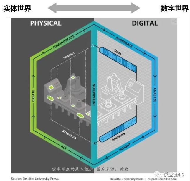 (图2 Digital Twin背后的虚实映射关系,图片来源:德勤)