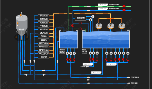 工业互联网可视化将整体园区以及工业流程展现出来,智能化改造可使得管理人员可随时查看整条流水线的运作状态,进行资源合理配置更有针对性的解决问题。