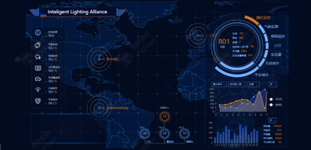 智慧路灯可随时采集周围环境信息,根据当天需求及时调配供给电量。变压器设备监测可视化,根据实时信息保证变压器平稳运行,预估信息确保供电稳定。以及城市数据大脑,保证城市资源的合理调配。