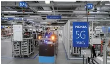 (6)5G在智能工厂的应用。诺基亚提出了基于5G、物联网、机器人和AR/VR技术的智能工厂概念,并在诺基亚奥卢工厂应用(见图7)。通过5G连接更多资产,获得全新的灵活性以及人工智能、机器学习和自动化等更多功能,从而提升运营能力。