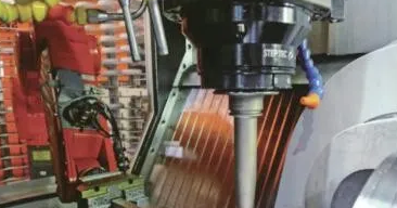 (2)智能化设备。以医疗器械行业加工义齿为例,340个义齿的加工各不相同,将机器人集成在机床内,通过机器人和加工机床的通信、义齿和机床加工程序的一一匹配以及机床的自动加工,可实现每个工件定制化生产,24h连续无人自动化运作,如图3所示。