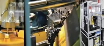 (1)动作改进。在精密制造的手表行业,机器人抓取0.1mm手表部件,与相机配合检查部件的外形、角度,合格方可嵌入模腔,提高了生产过程的质量一次合格率,减少了浪费(见图2)。