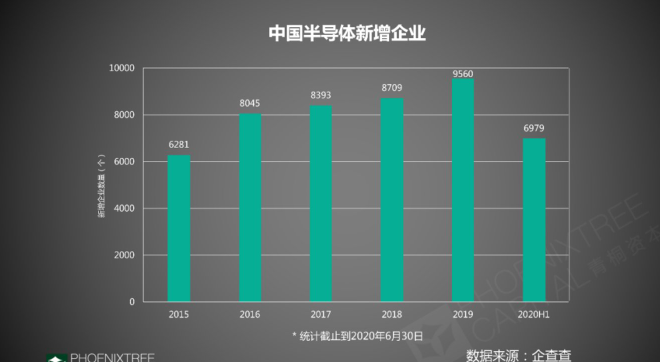 中国半导体市场规模占全球第一,据前瞻产业研究院数据,2019年中国半导体市场规模为1441亿美元,占全球34.97%。另据“某企业信息查询平台”数据,2019年全年新增注册半导体企业9560家,而2020年仅上半年就新增6979家。
