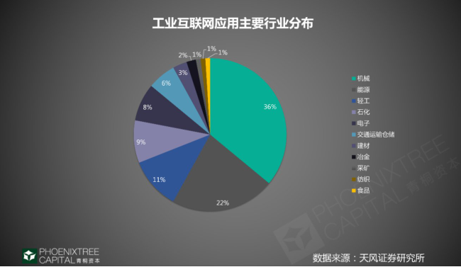 下游,工业互联网渗透率2019年仅2.76%,还有很大上升空间。另据天风证券研究所数据,目前工业互联网应用行业前5位,依次是机械、能源、轻工、石化、电子。