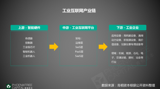 工业互联网产业链较长,上游的智能硬件收集工业大数据,中游的工业互联网平台进行数据处理,下游则为工业企业。其中,工业互联网平台占重要地位。