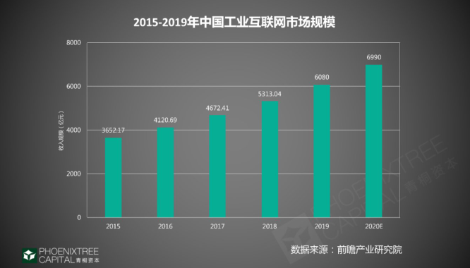 2019年中国工业互联网市场规模已达6080亿元,增速为13.5%。据前瞻产业研究院数据,2015年其市场规模仅为3652亿元,预计2020年可达6990亿元。短短5年间,市场规模增长接近一倍。