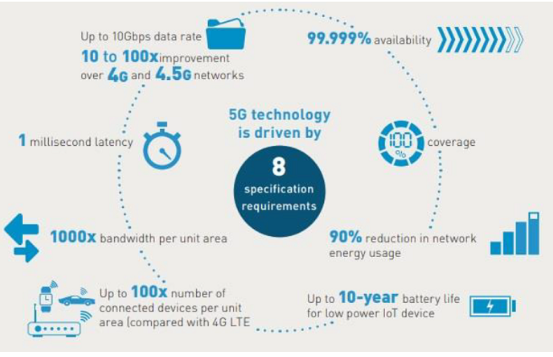 预计5G技术将比现有4G网络快约100倍,并在实时发送和接收数据时提供更低的延迟率。与当前网络相比,处理更多连接设备的附加功能将为人工智能(AI)和机器学习提供支持,释放智慧城市和物联网(IoT)的潜力。