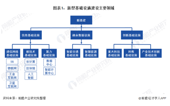 国家发改委把新型基础设施分为三个方面内容:一是信息基础设施,主要是指基于新一代信息技术演化生成的基础设施,如通信网络基础设施、新技术基础设施、算力基础设施等;二是融合基础设施,主要是指深度应用互联网、大数据、人工智能等技术,支撑传统基础设施转型升级,进而形成的融合基础设施,如智能交通基础设施、智慧能源基础设施等;三是创新基础设施,主要是指支撑科学研究、技术开发、产品研制的具有公益属性的基础设施,如重大科技基础设施、科教基础设施、产业技术创新基础设施等。