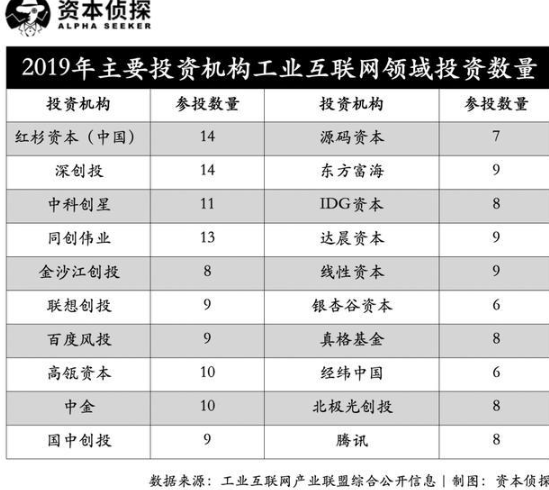 根据信通院发布的《中国工业互联网投融资报告(2019)》显示,包括中金资本、高瓴资本等国内知名机构,红杉资本、GGV纪源资本等知名美元基金,以及中国互联网投资基金、国家中小企业发展基金等国家级产业投资基金都是工业互联网的重要投资机构。