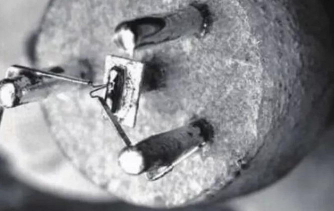 (贝尔实验室以扩散技术制造的第一个硅基晶体三极管)